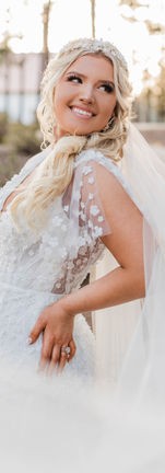 The whimsical and romantic bridal aesthetic features ethereal, flowing fabrics like tulle and organza often adorned with florals, lace, and soft ruffles. This fairy tale like charm emphasizes light, airy silhouettes with intricate detailing capturing a dreamy enchanting vibe perfect for your romantic wedding.